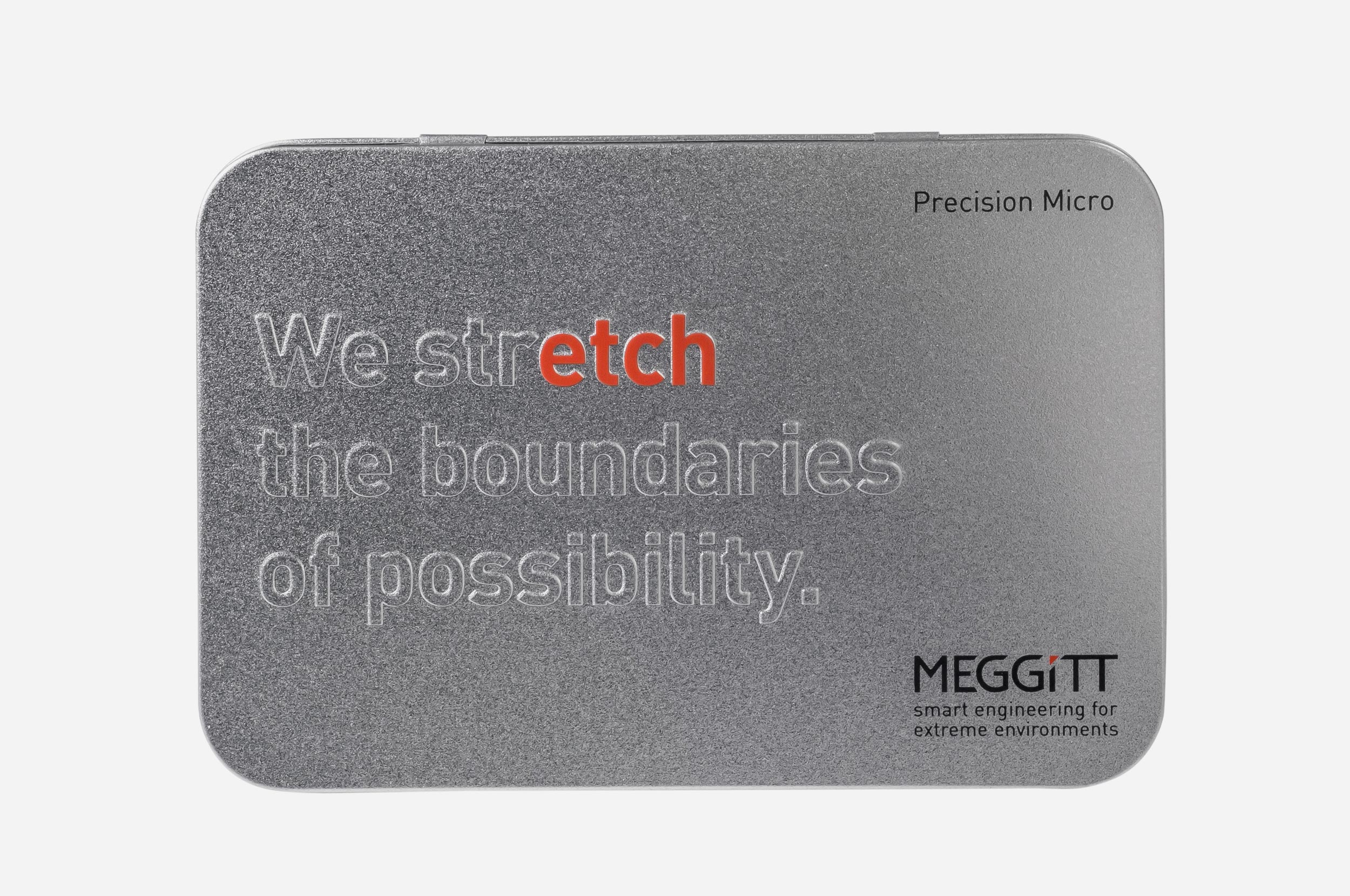 PM_sampletin designed by Hybrid Creative for Precision Micro to showcase their examples of photo etching